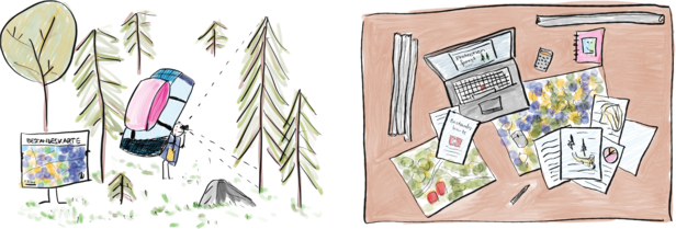 Mehrere Projekte teilen sich eine Idee: Der «Nukleus» unserer interaktiven Karten wurde im NFP 68 Projekt SOSTANAH gestreut, welches sich den Wechselwirkungen von Pflanzen, Mykorrhizapilzen und Geotechnik widmete. Zur Umsetzung der daraus resultierenden Resultate wurde das Konzept der «Interaktiven Karten» vorgestellt und damit verbunden der Samen zum Keimen gebracht.